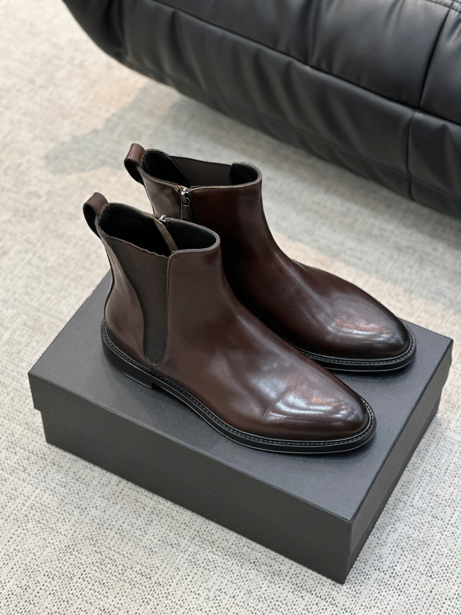 Bề mặt da bò hoặc da bê thật (tuỳ phiên bản) được xử lý mịn màng, độ bóng nhẹ sang trọng. Nội thất bên trong bốt lót da cao cấp, thoáng khí và êm ái khi mang cả ngày.