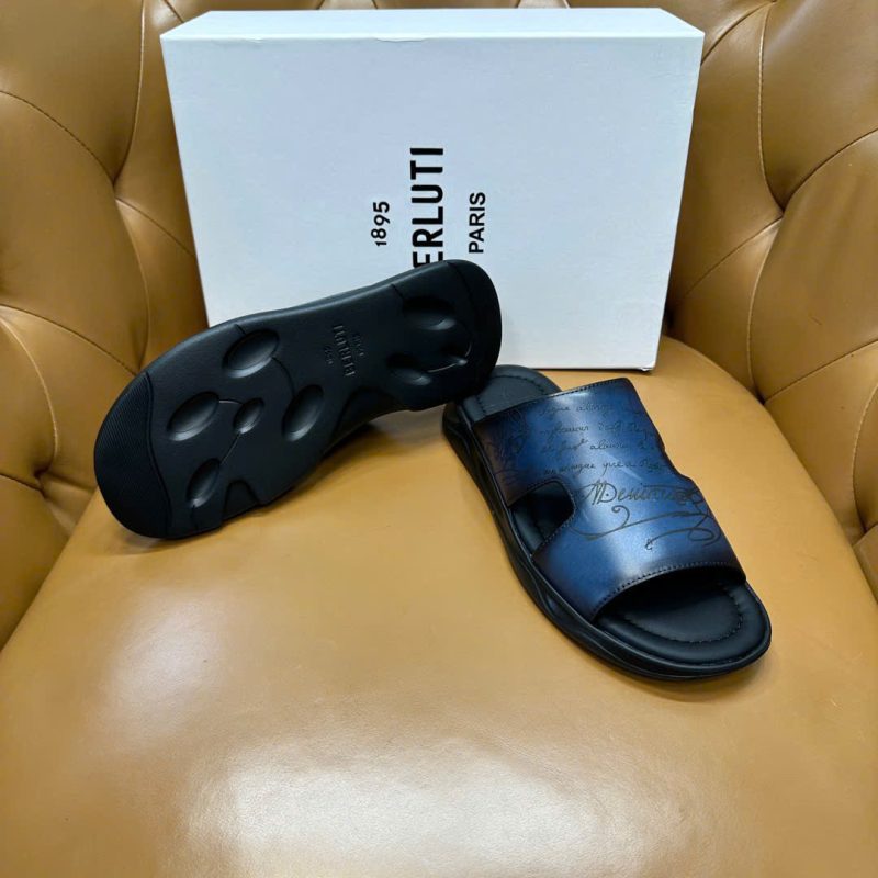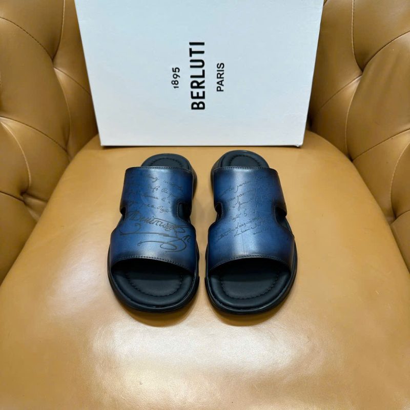 Dép được làm hoàn toàn từ da Venezia – dòng da thuộc thượng hạng do chính Berluti phát triển, nổi bật với độ mềm mại, độ bóng tự nhiên và khả năng lên màu patina tuyệt đẹp theo thời gian.