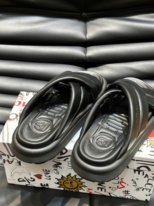 Phần đế và quai dép được làm từ cao su hoặc da PU cao cấp, có độ đàn hồi và độ bám tốt, mang lại cảm giác êm chân, chống trơn trượt hiệu quả. Độ hoàn thiện sắc nét – từng chi tiết đều được chăm chút kỹ lưỡng.