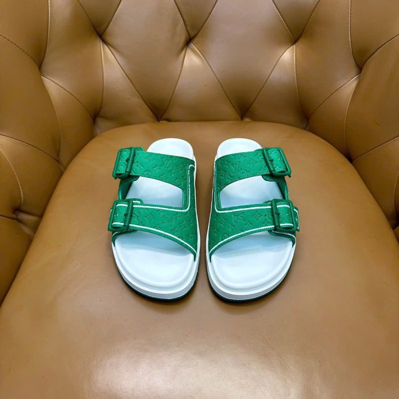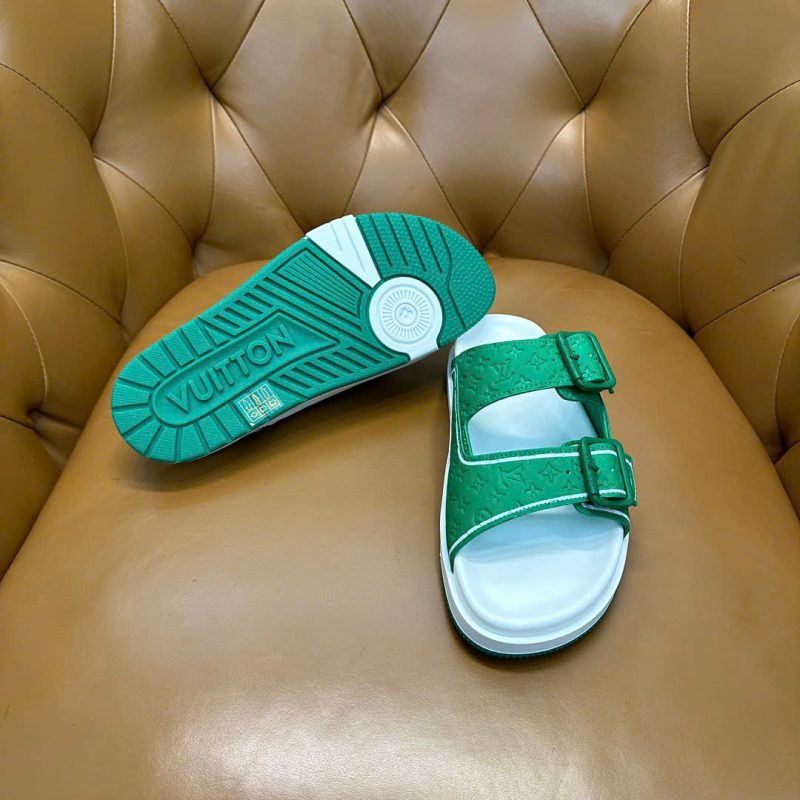 Sản phẩm được làm từ chất liệu da thật cao cấp và vật liệu tổng hợp bền bỉ, kết hợp với kỹ thuật gia công thủ công tỉ mỉ của Louis Vuitton, mang lại trải nghiệm êm ái và độ bền vượt trội. Chi tiết logo LV được khéo léo bố trí trên phần quai dép, tạo điểm nhấn thời trang đẳng cấp.