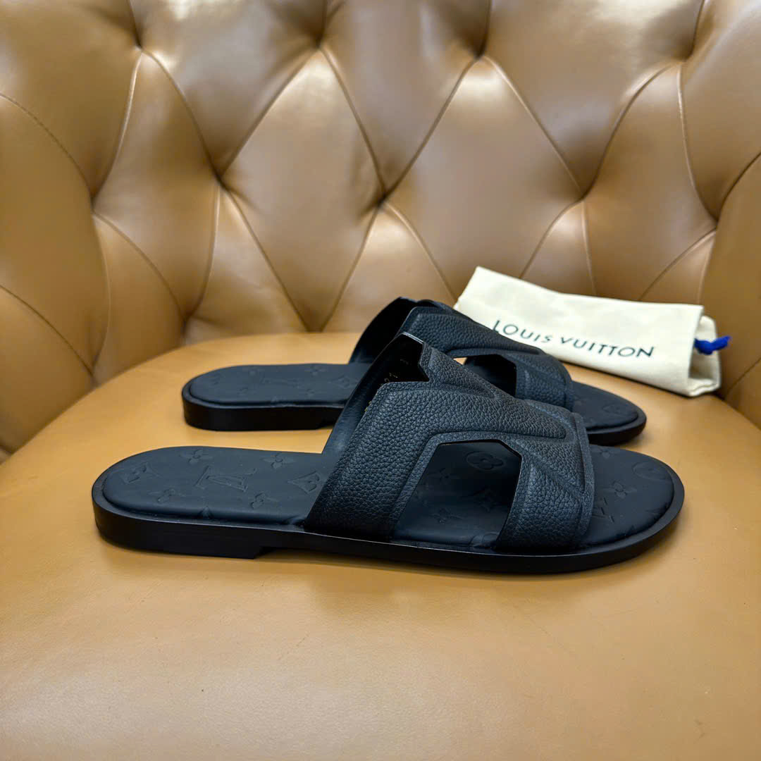• Logo Louis Vuitton tinh tế: Logo thương hiệu được khắc hoặc thêu tinh tế trên dép, tạo điểm nhấn đẳng cấp và nhận diện thương hiệu rõ nét.