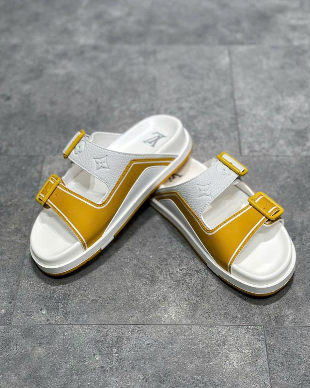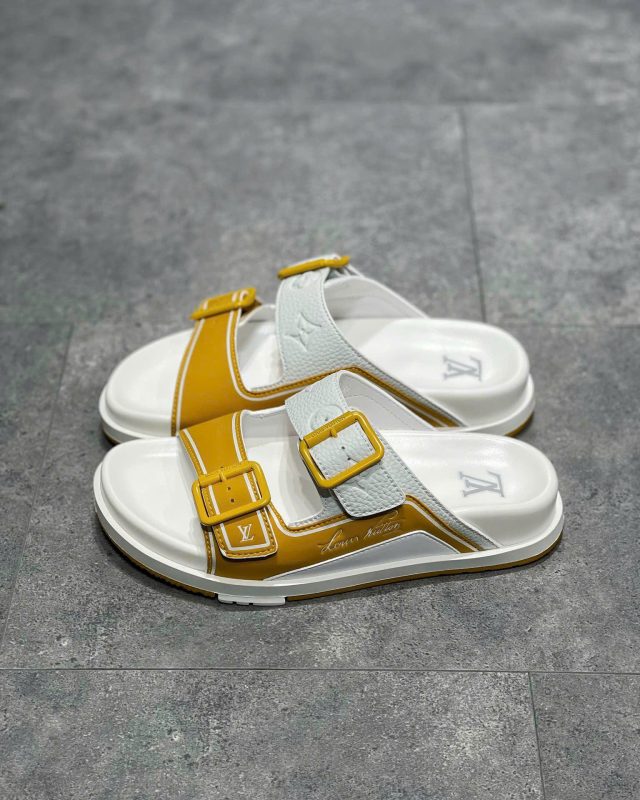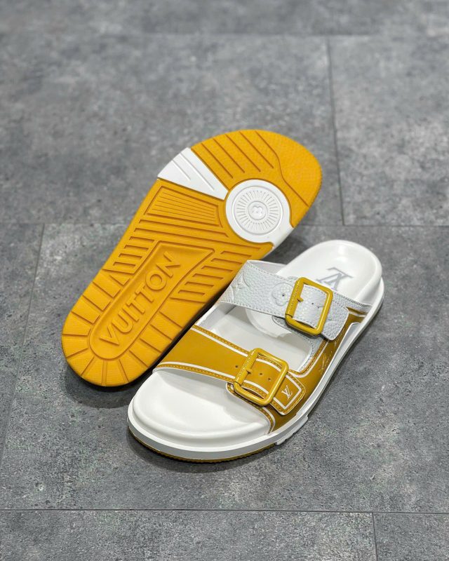 Dép Sandal LV Trainer Mules – vàng trắng