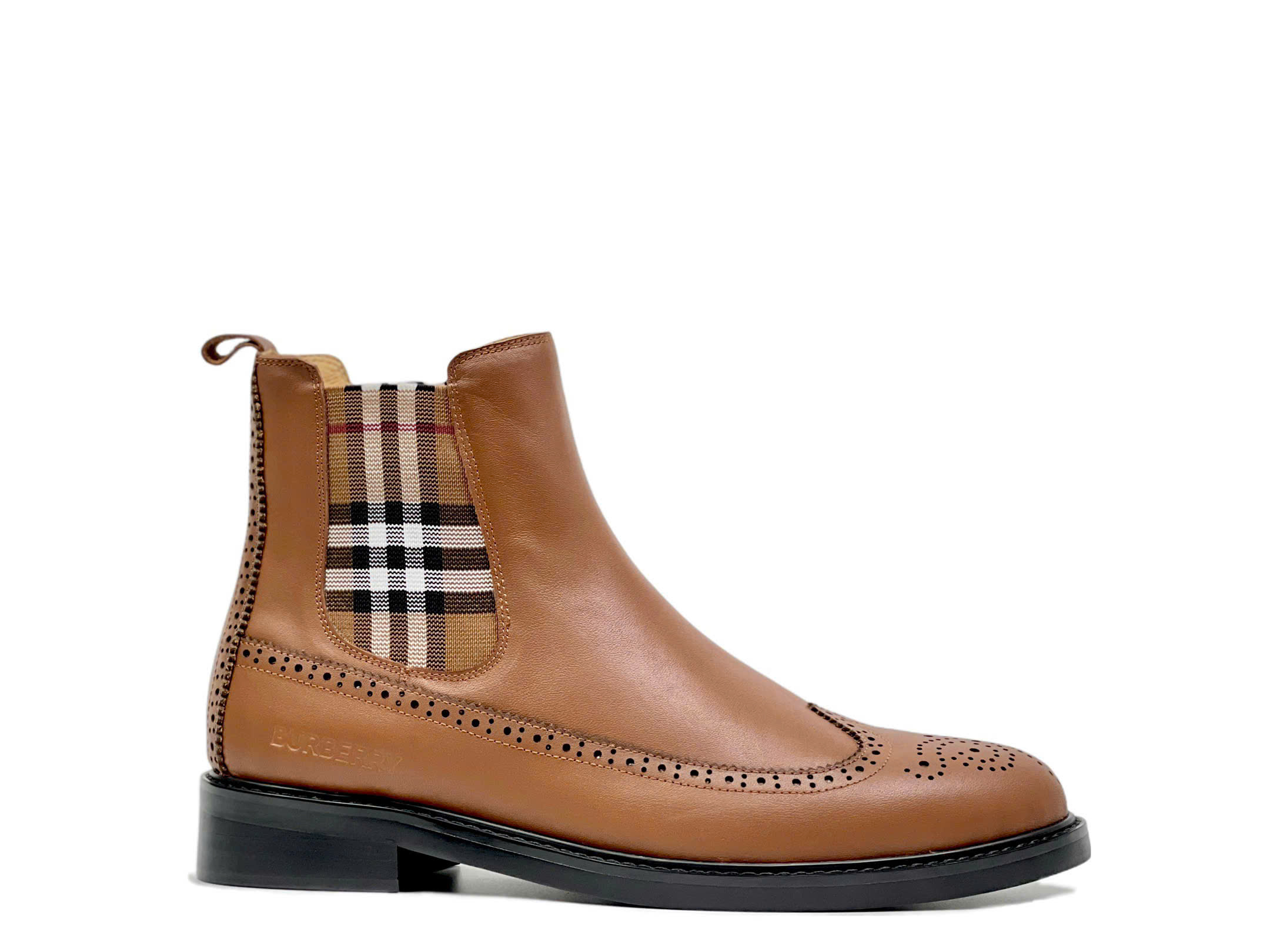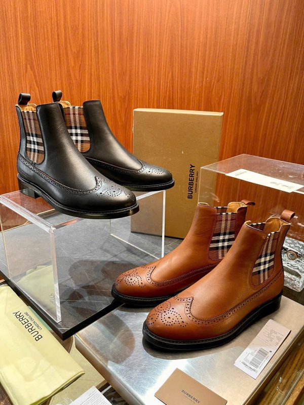 Giày bốt da Burberry – Boots Chelsea Check Panel