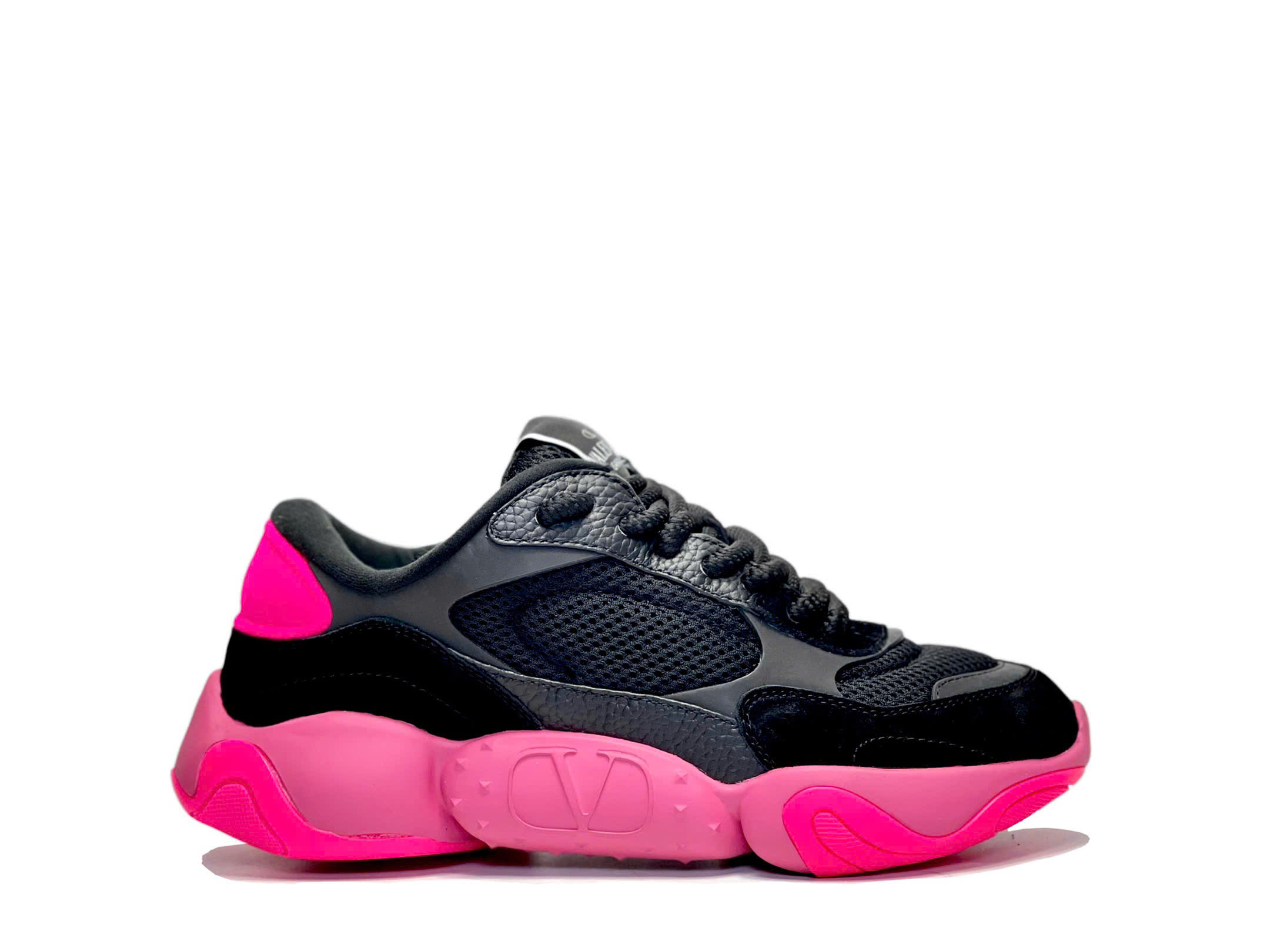 • Thể hiện sở thích của Valentino Garavani về chi tiết logo, đôi giày thể thao Bubbleback này thể hiện sự cuồng logo. Với thiết kế dạng tấm, đôi giày được nhấn nhá bằng miếng vá VLogo Signature tương phản ở phía sau.