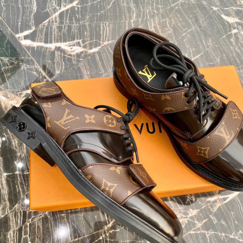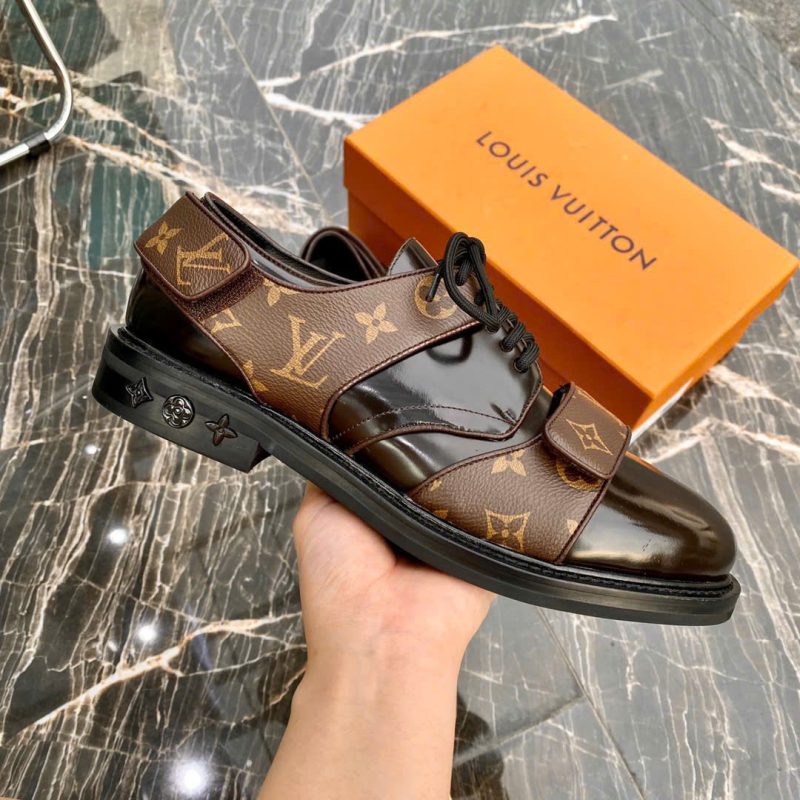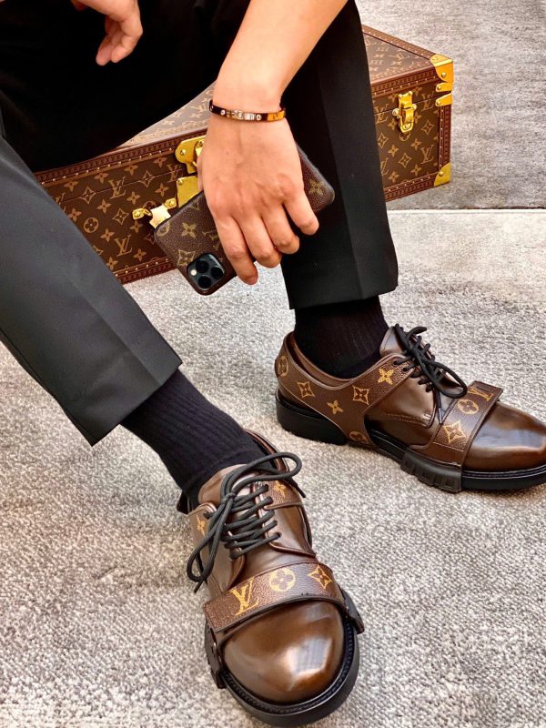 Khoá kim loại màu vàng ánh kim mạ vàng tạo điểm nhấn thời thượng và thể hiện đẳng cấp thương hiệu Louis Vuitton.Đế giày chất lượng cao