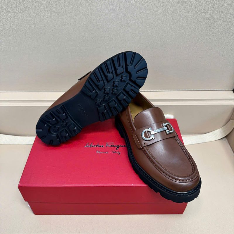 Sản phẩm nổi bật với biểu tượng Gancini Plaque đặc trưng của thương hiệu Ferragamo, thể hiện sự sang trọng và đẳng cấp vượt thời gian. Chất liệu da thật cao cấp cùng kỹ thuật thủ công tinh xảo đảm bảo độ bền và vẻ đẹp hoàn mỹ cho đôi giày.