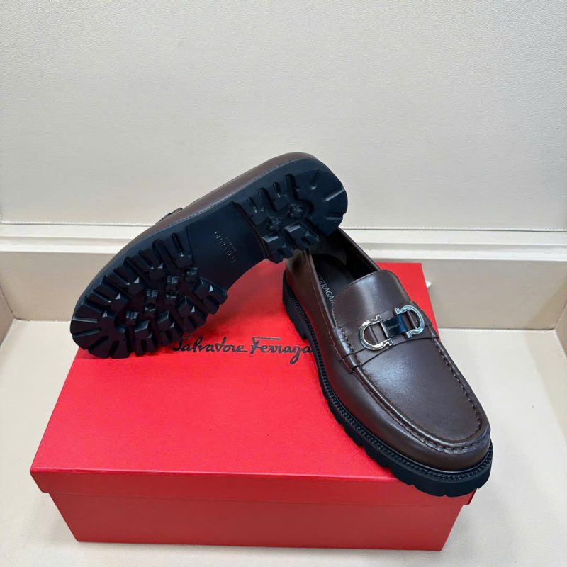 Sản phẩm nổi bật với biểu tượng Gancini Plaque đặc trưng của thương hiệu Ferragamo, thể hiện sự sang trọng và đẳng cấp vượt thời gian. Chất liệu da thật cao cấp cùng kỹ thuật thủ công tinh xảo đảm bảo độ bền và vẻ đẹp hoàn mỹ cho đôi giày.