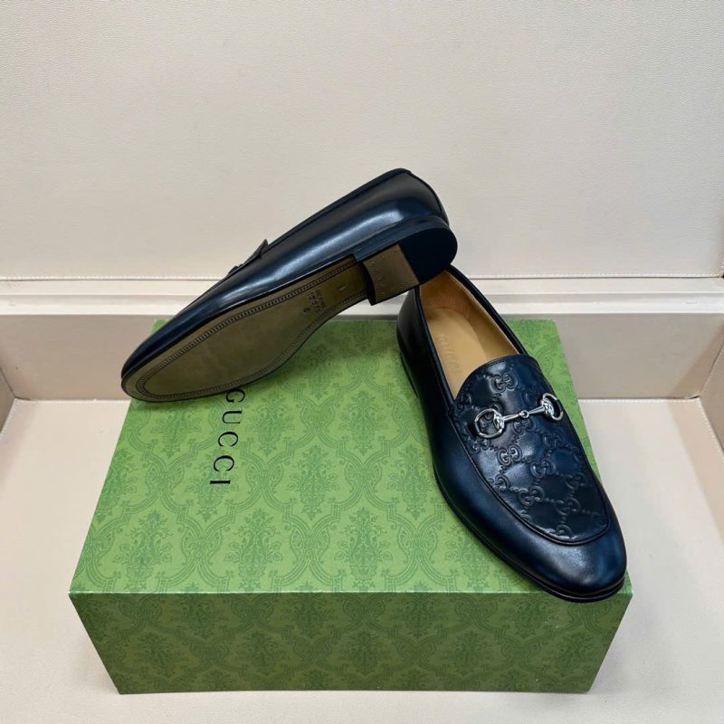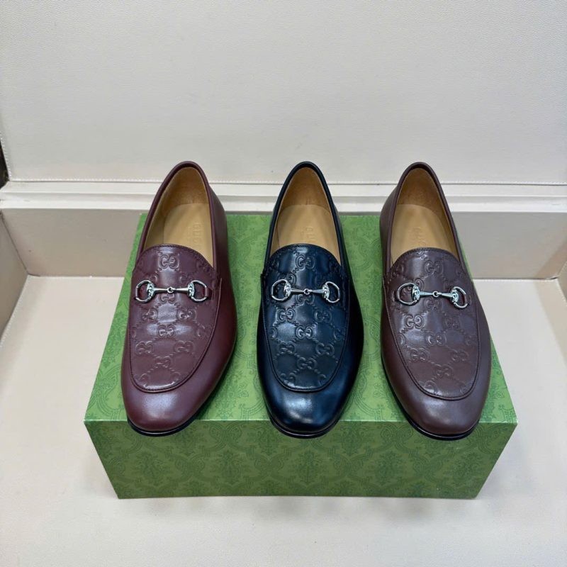 Chi tiết Horsebit kim loại: Móng ngựa mạ bạc hoặc vàng ánh kim, điểm nhấn thanh lịch không thể thiếu trên loafer Gucci.