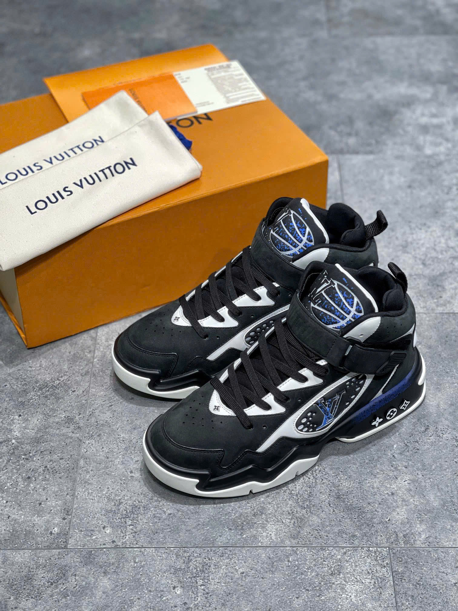 • Logo LV nổi bật: Tinh tế trên thân giày, khẳng định đẳng cấp thương hiệu.