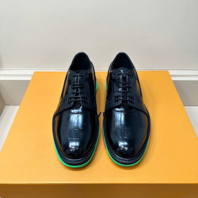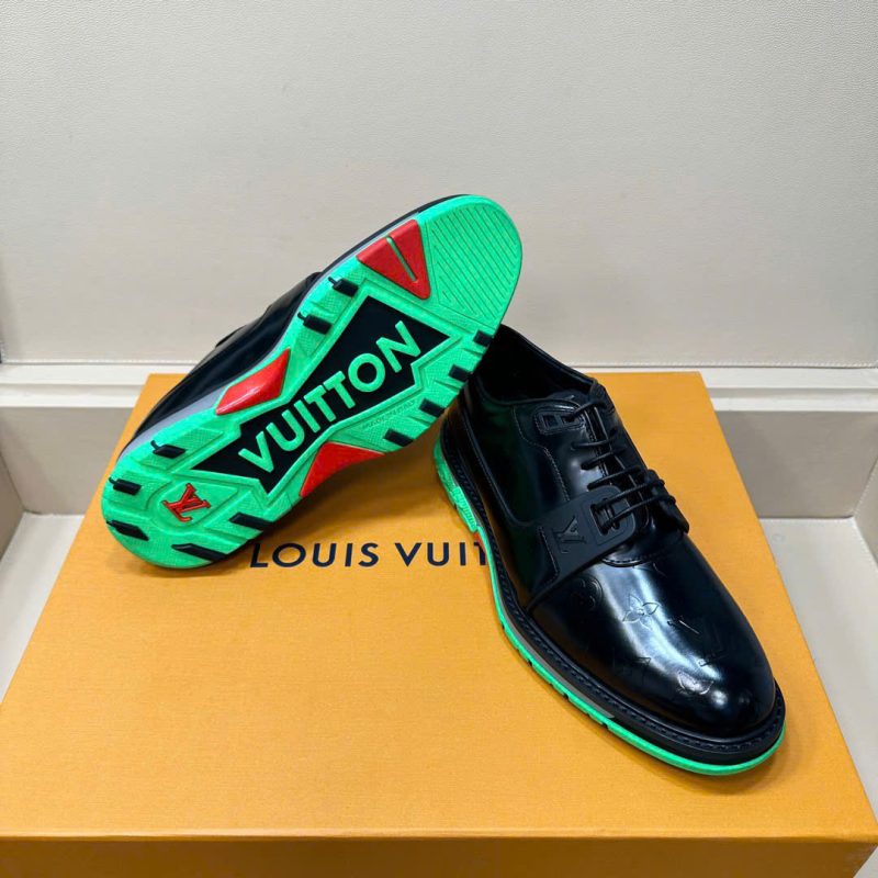 - LV Fusion Derby trong bộ sưu tập thời trang Xuân-Hè 2021 của Louis Vuitton. Sản phẩm này có phần trên màu đen cổ điển làm từ da bê tráng men và đế ngoài kiểu giày thể thao thông thường. Có đế ngoài nhẹ hai màu làm từ cao su và vi sợi có đặc tính chống trượt. Hoa thêu ở bên hông và chữ ký Vuitton ở phía dưới.