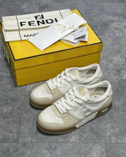 • Phong cách thời trang tinh tế: Logo Fendi được thiết kế nổi bật, tạo điểm nhấn đẳng cấp trên nền giày thể thao hiện đại.