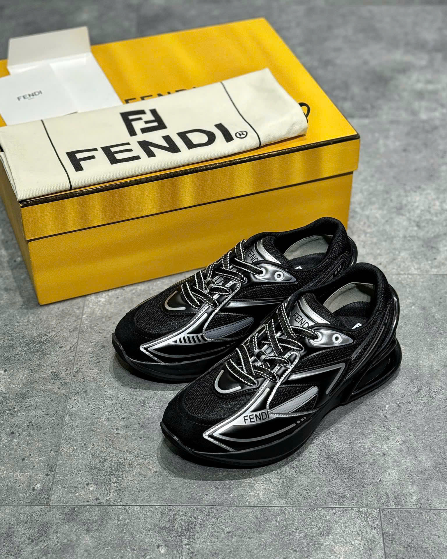 • Phong cách thời trang tinh tế: Logo Fendi được thiết kế nổi bật, tạo điểm nhấn đẳng cấp trên nền giày thể thao hiện đại.