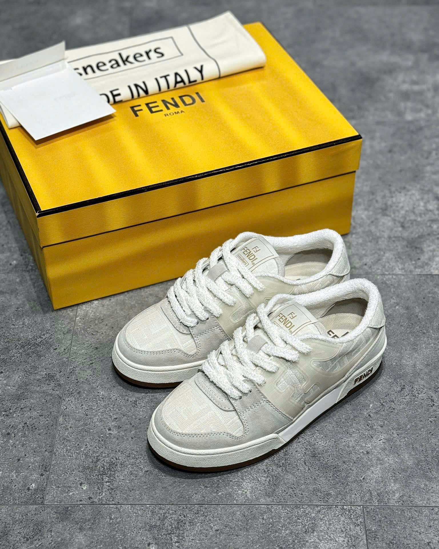 • Logo Fendi nổi bật: Biểu tượng thương hiệu được thiết kế tinh tế, làm điểm nhấn sang trọng cho đôi giày.