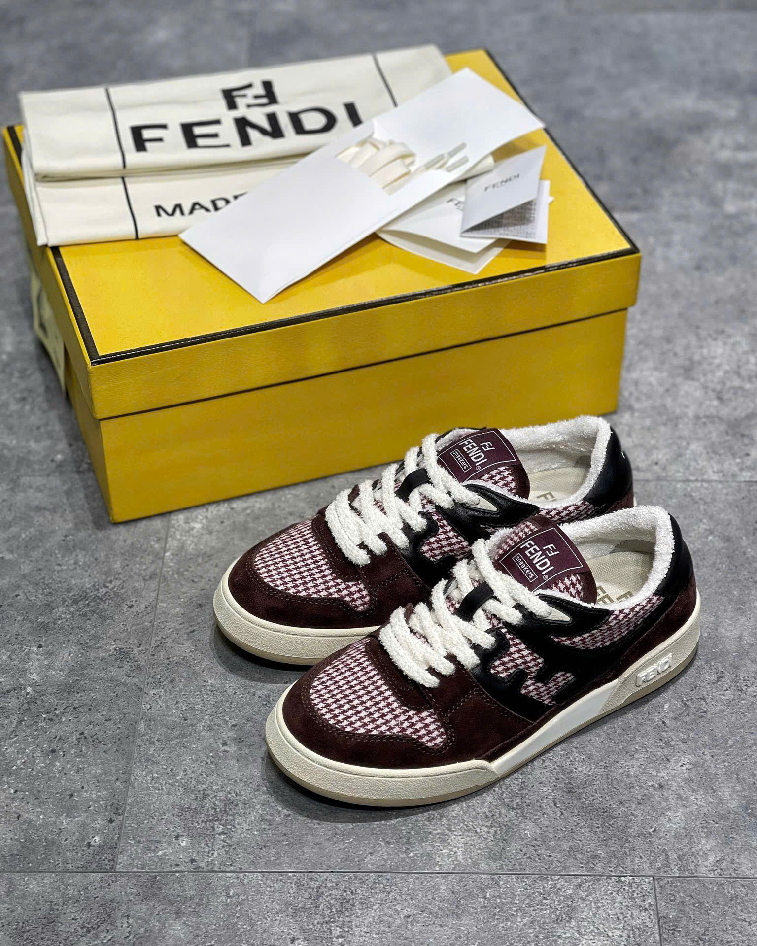 • Logo Fendi nổi bật: Biểu tượng thương hiệu được thiết kế tinh tế, làm điểm nhấn sang trọng cho đôi giày.