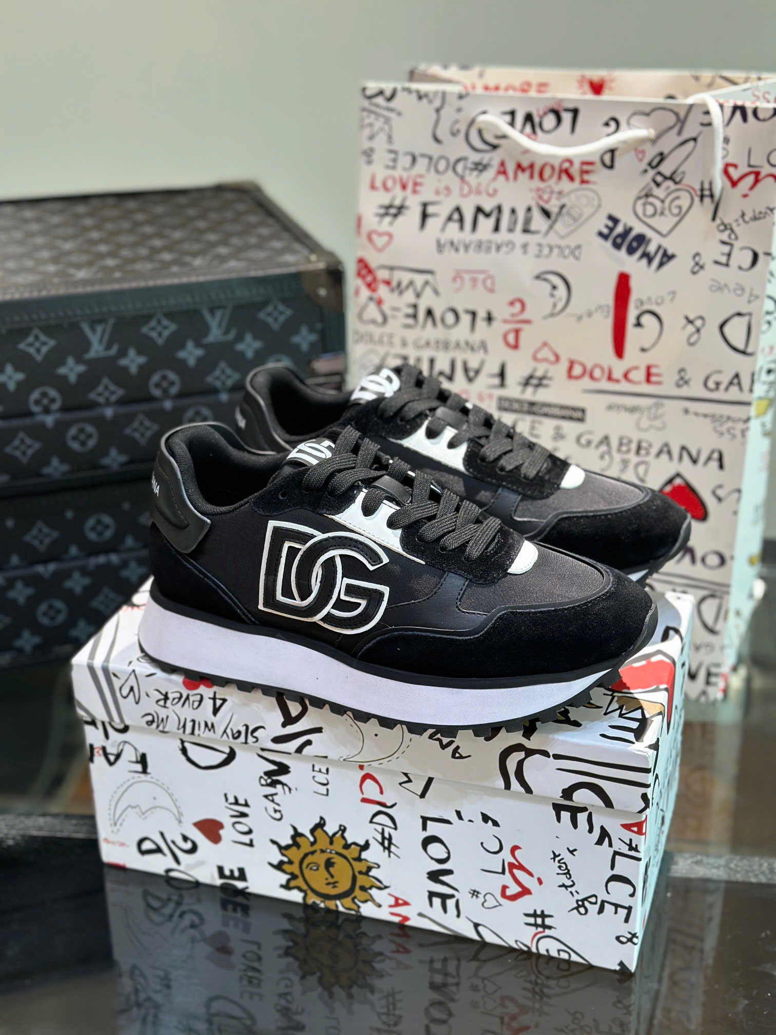 D&G Portofino nổi bật với phần logo in lớn phía gót, họa tiết hoặc dòng chữ “Dolce & Gabbana” sắc sảo ở hai bên, mang đậm tinh thần luxury streetwear. Form giày chuẩn dáng Ý, giúp tôn dáng và tăng chiều cao tự nhiên.