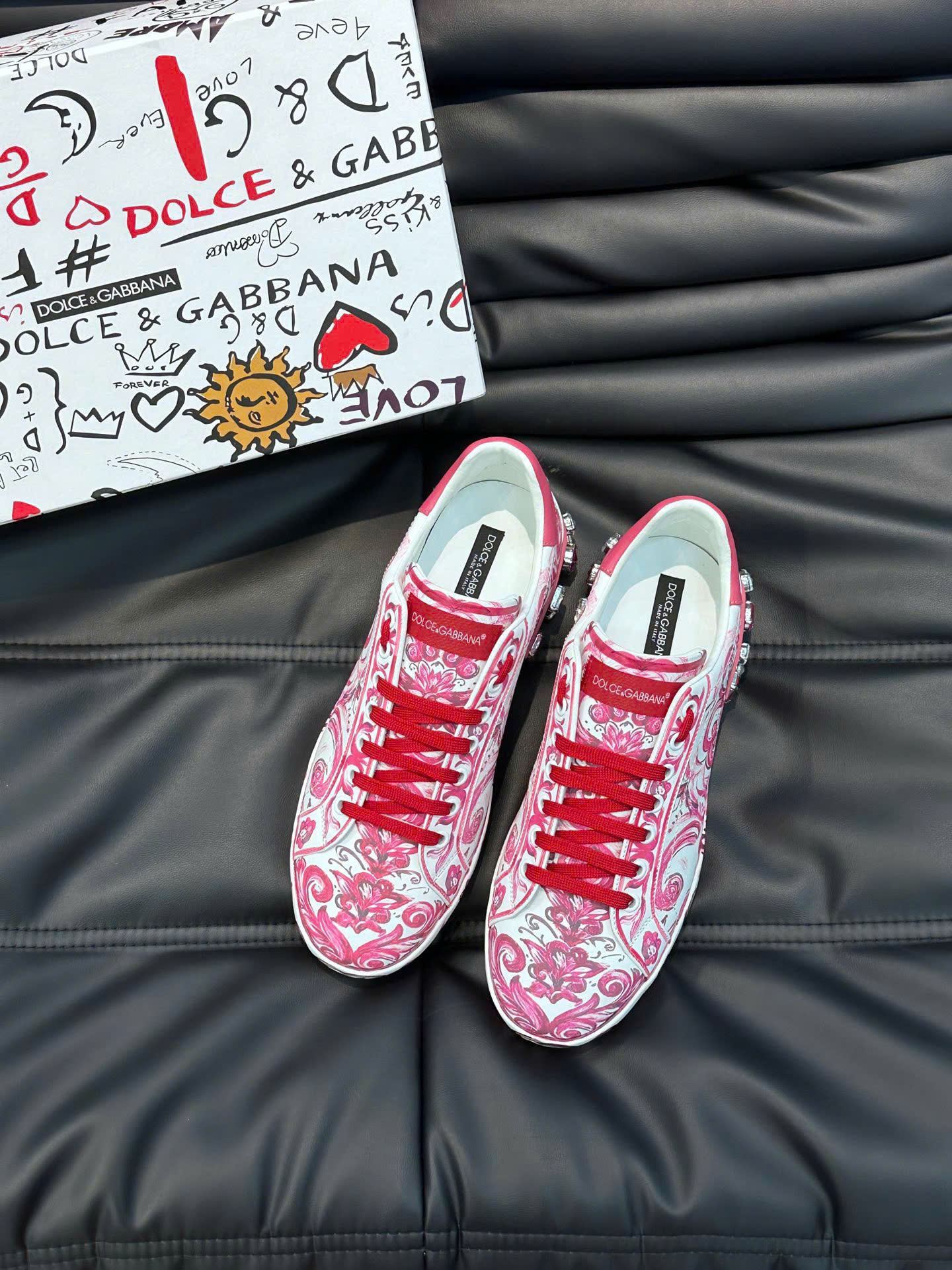 Giày Dolce&Gabbana Portofino là một trong những dòng sneaker biểu tượng của thương hiệu thời trang xa xỉ D&G. Với thiết kế tinh giản, form giày chuẩn châu Âu cùng logo nổi bật, đôi giày này không chỉ mang lại cảm giác thoải mái mà còn thể hiện gu thời trang sang trọng, cá tính cho người mang.