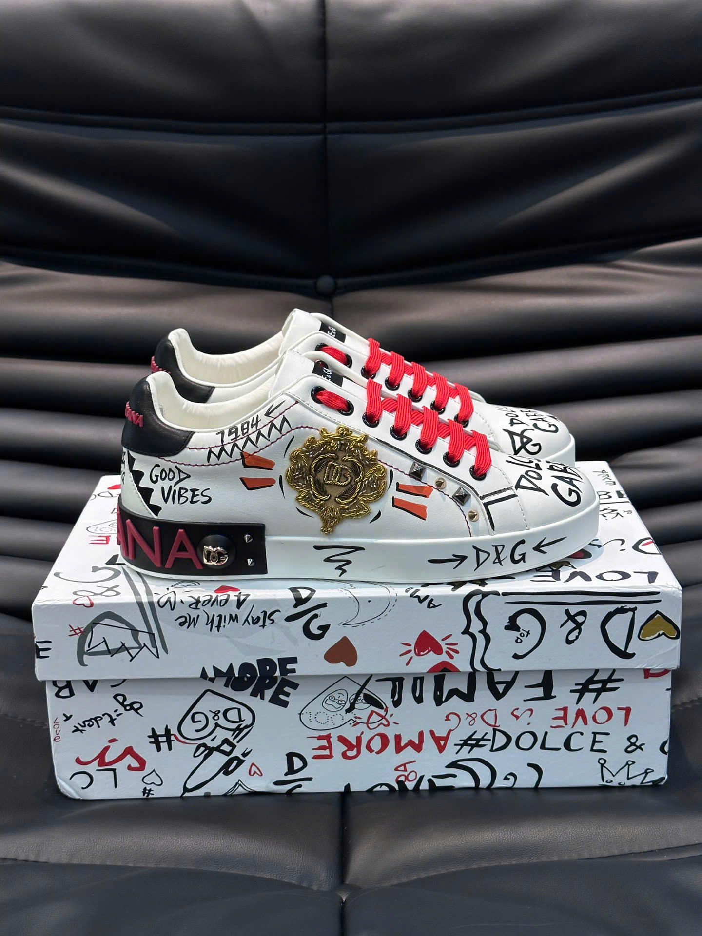 Giày Dolce&Gabbana Portofino là một trong những dòng sneaker biểu tượng của thương hiệu thời trang xa xỉ D&G. Với thiết kế tinh giản, form giày chuẩn châu Âu cùng logo nổi bật, đôi giày này không chỉ mang lại cảm giác thoải mái mà còn thể hiện gu thời trang sang trọng, cá tính cho người mang.