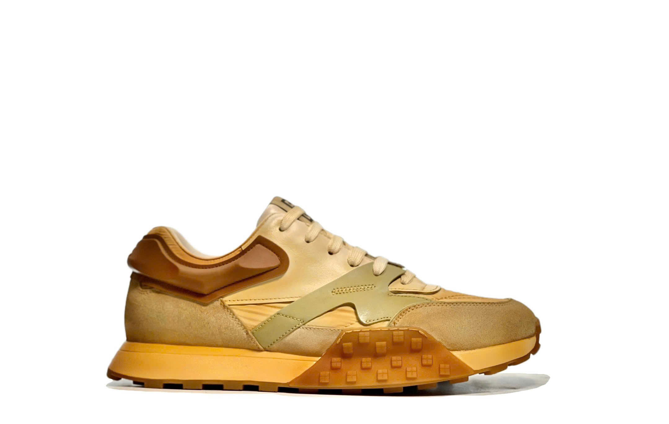 Chất liệu cao cấp: phần thân làm từ vải kỹ thuật (technical knit), kết hợp da thật và lớp lưới thoáng khí.