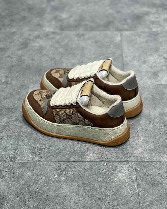 Giày Gucci Screener nổi bật với kiểu dáng độc đáo, phối màu tinh tế và các chi tiết logo đặc trưng, tạo nên nét riêng biệt không thể nhầm lẫn.