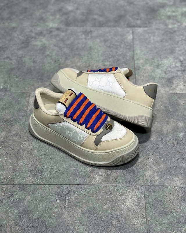 Giày Gucci Screener nổi bật với kiểu dáng độc đáo, phối màu tinh tế và các chi tiết logo đặc trưng, tạo nên nét riêng biệt không thể nhầm lẫn.