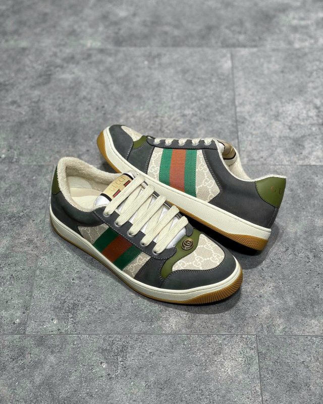 Giày Gucci Screener nổi bật với kiểu dáng độc đáo, phối màu tinh tế và các chi tiết logo đặc trưng, tạo nên nét riêng biệt không thể nhầm lẫn.