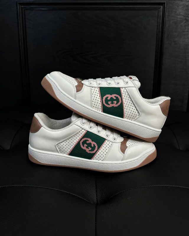 Giày Gucci Screener nổi bật với kiểu dáng độc đáo, phối màu tinh tế và các chi tiết logo đặc trưng, tạo nên nét riêng biệt không thể nhầm lẫn.