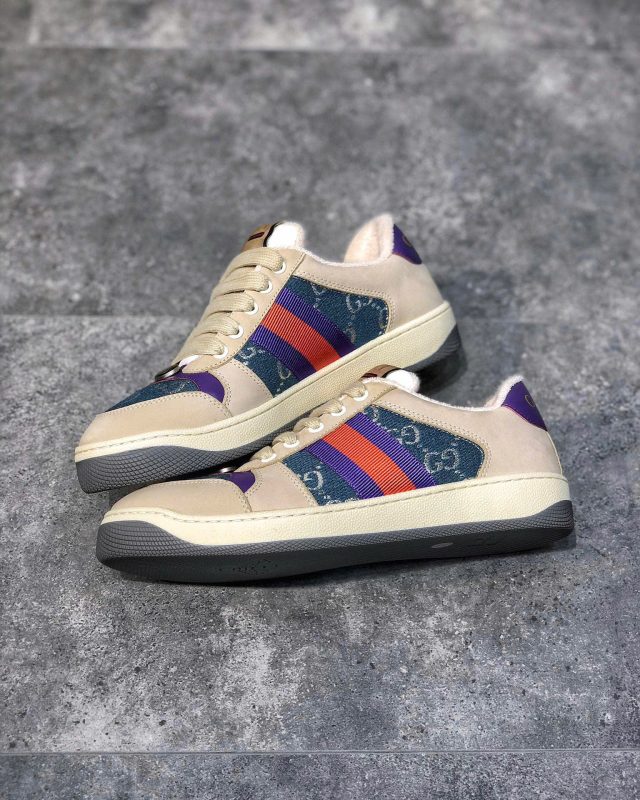 Giày Gucci Screener nổi bật với kiểu dáng độc đáo, phối màu tinh tế và các chi tiết logo đặc trưng, tạo nên nét riêng biệt không thể nhầm lẫn.