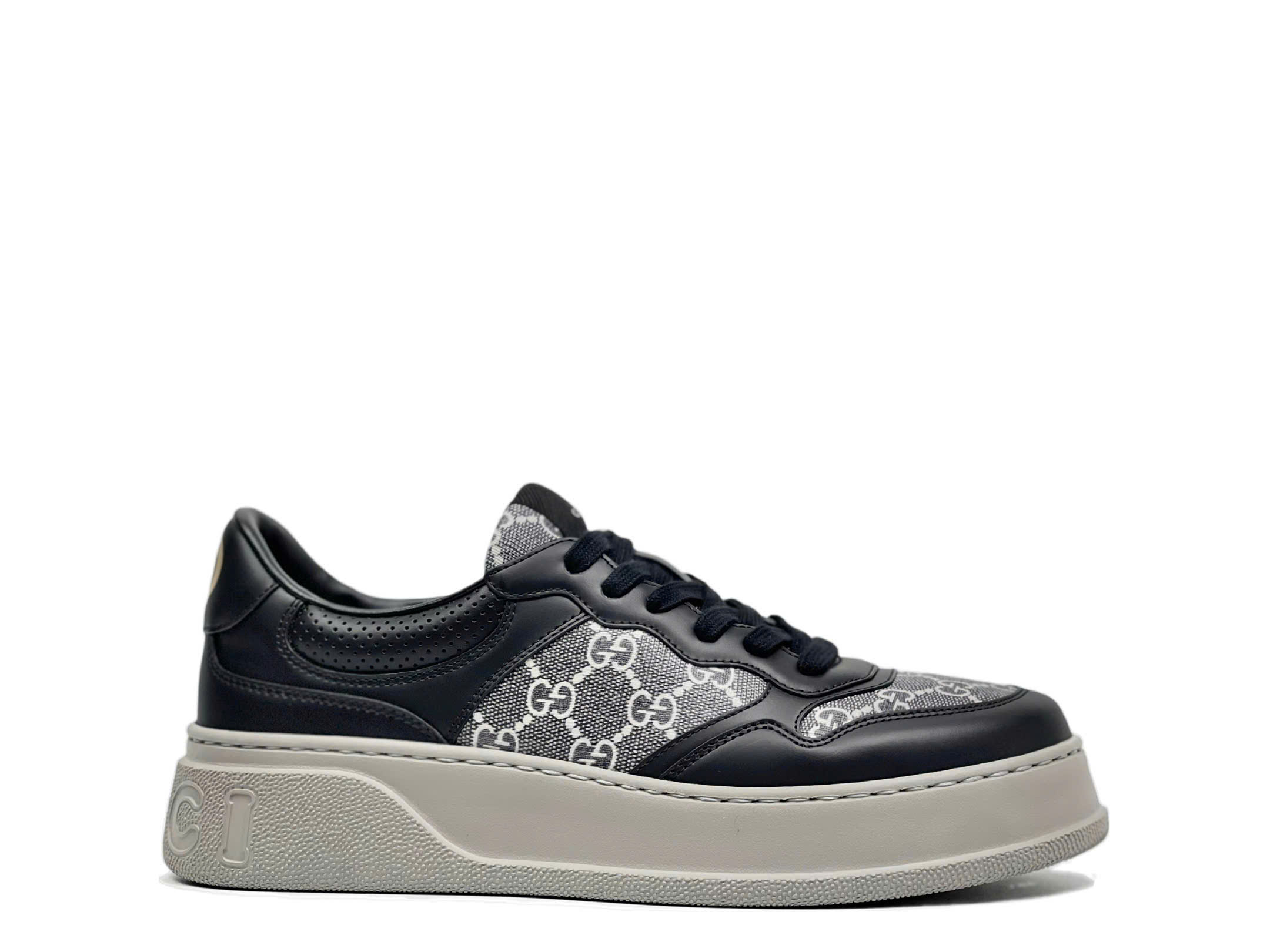 • Chất liệu da cao cấp: Thân giày làm từ da thật mềm mại, được xử lý kỹ thuật embossing giúp nổi bật logo Gucci trên bề mặt da.